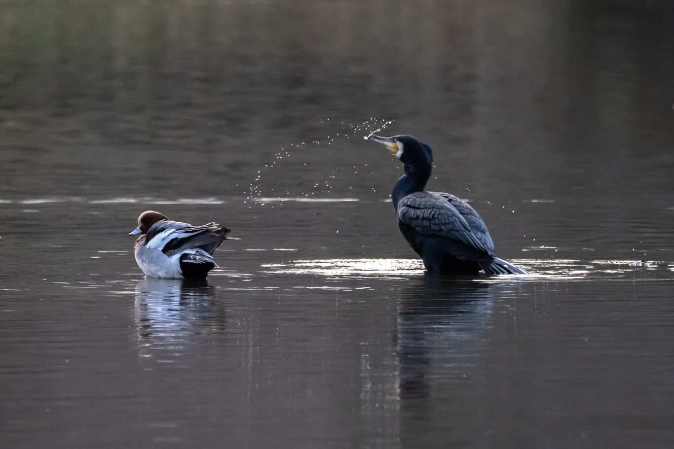 ■ ヒドリガモ(左)とカワウ(右) ■ 埼玉県狭山市 ■ 2026/3/15