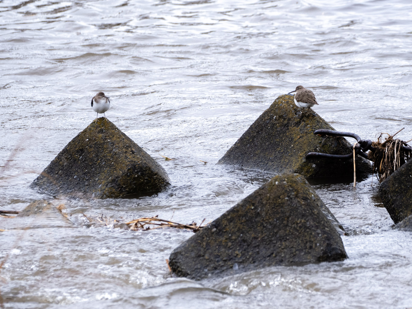 増水の入間川の野鳥たち